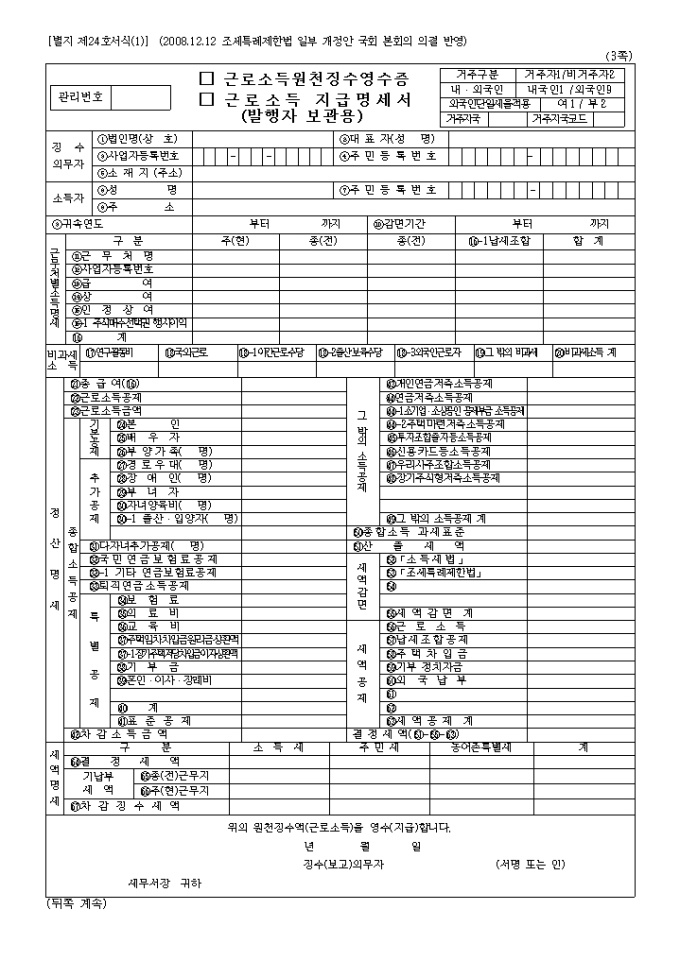 9,000원/월[2008년 연말정산]근로소득 원천징수영수증, 근로소득지급명세서입니다.