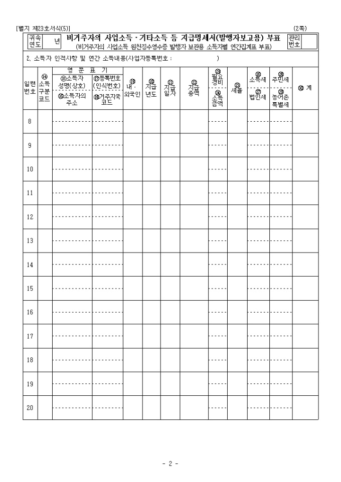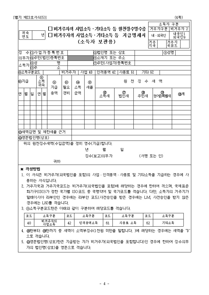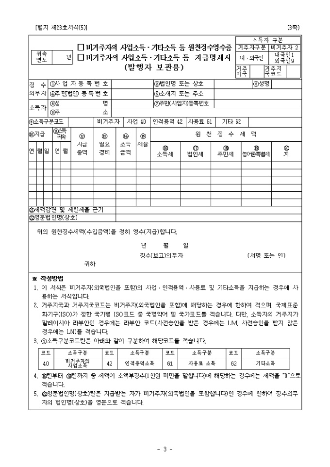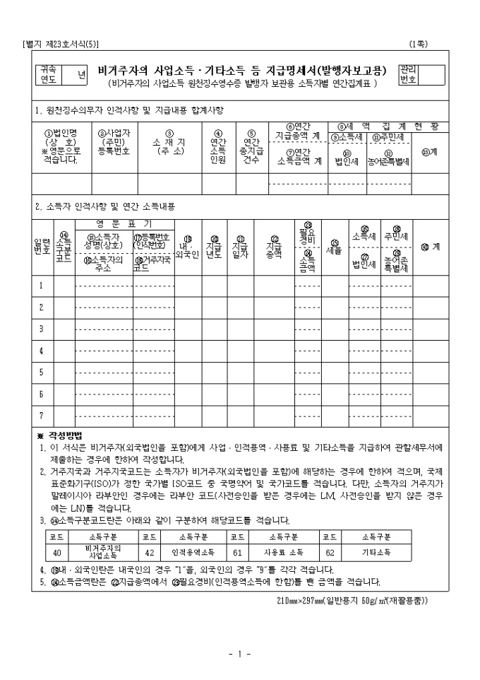 9,000원/월[2008년 연말정산]비거주자의 사업소득 · 기타소득 등 지급 명세서입니다.