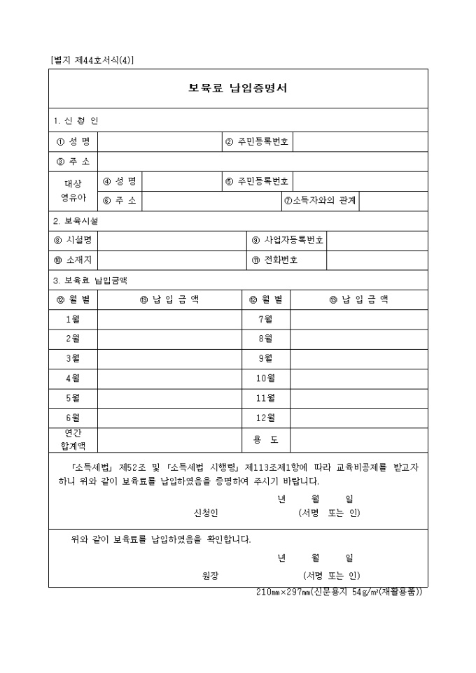 9,000원/월[2008년 연말정산]보육료 납입 증명서 입니다.