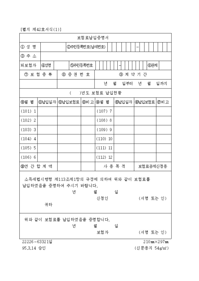 9,000원/월[2008년 연말정산]보험료 납입 증명서 입니다.