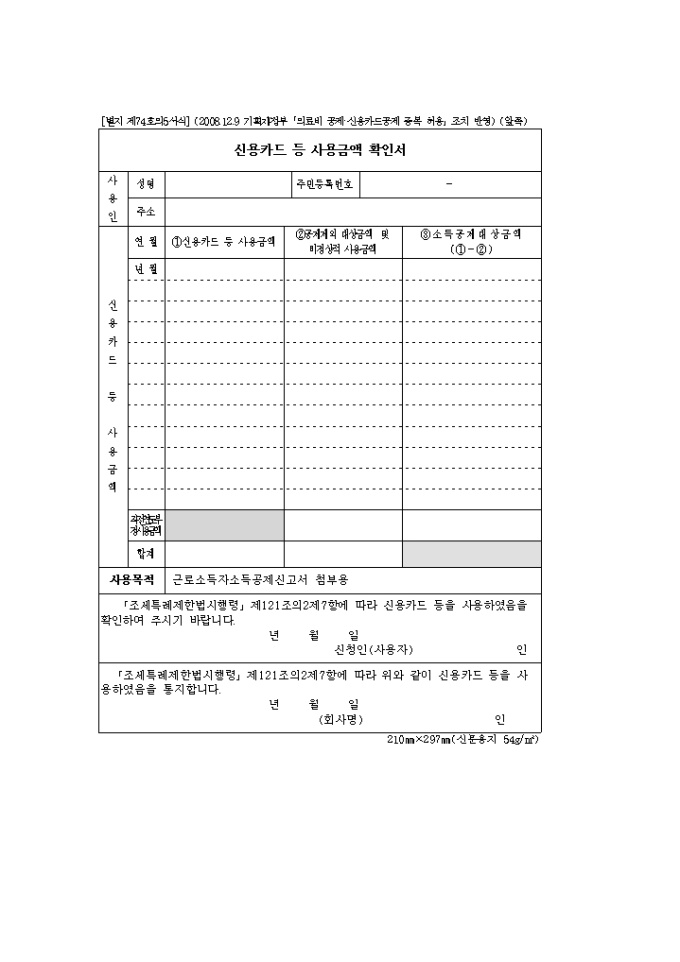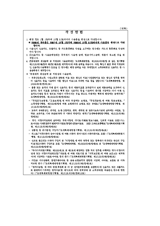 9,000원/월[2008년 연말정산]신용카드 등 사용금액 확인서 입니다.