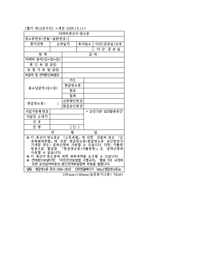 9,000원/월[2008년 연말정산]의료비 영수증(국민건강보험요양급여의 기준에 관한 규칙)(별지 제10호 서식) 입니다.