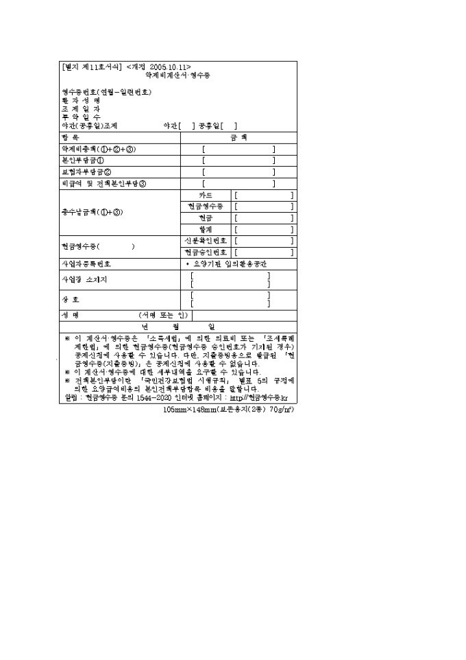 9,000원/월[2008년 연말정산]의료비 영수증(국민건강보험요양급여의 기준에 관한 규칙)(별지 제11호 서식) 입니다.