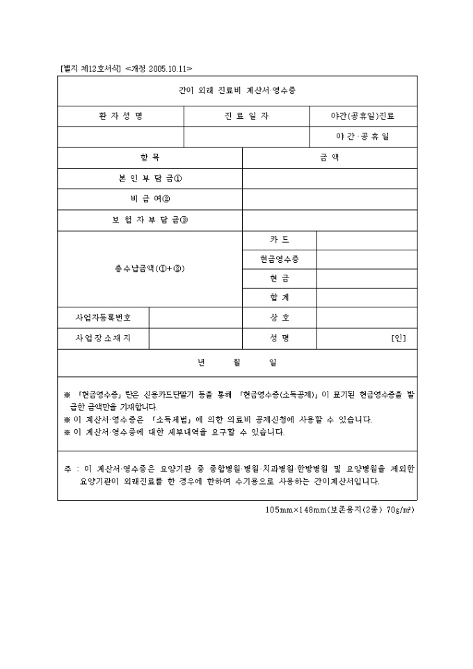 9,000원/월[2008년 연말정산]의료비 영수증(국민건강보험요양급여의 기준에 관한 규칙)(별지 제12호 서식) 입니다.