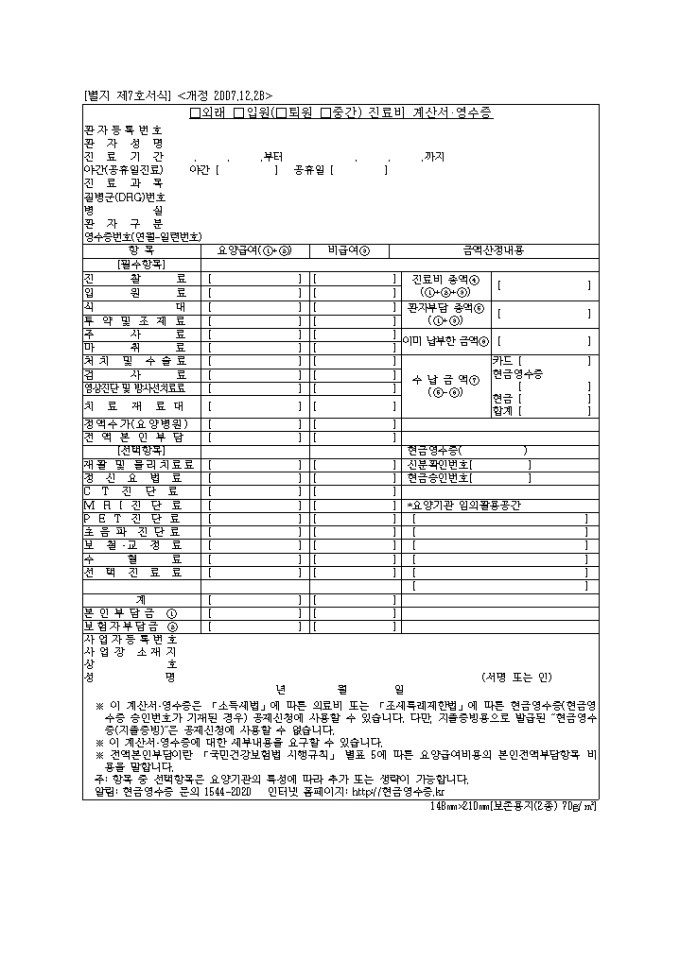 9,000원/월[2008년 연말정산]의료비 영수증(국민건강보험요양급여의 기준에 관한 규칙)(별지 제7호 서식) 입니다.