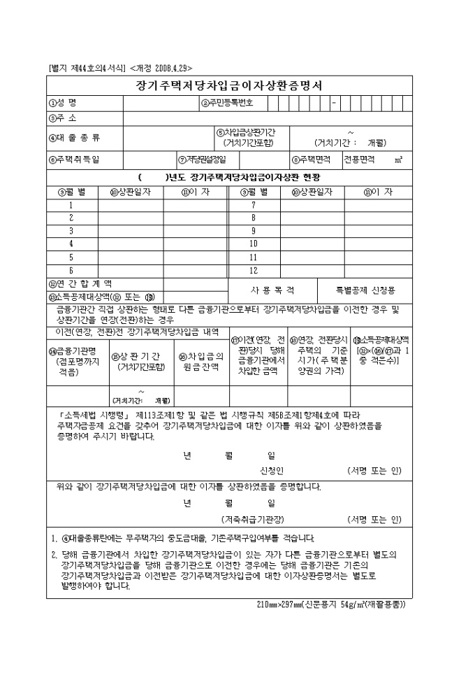 9,000원/월[2008년 연말정산]장기주택저당 차입금 이자상환 증명서 입니다.