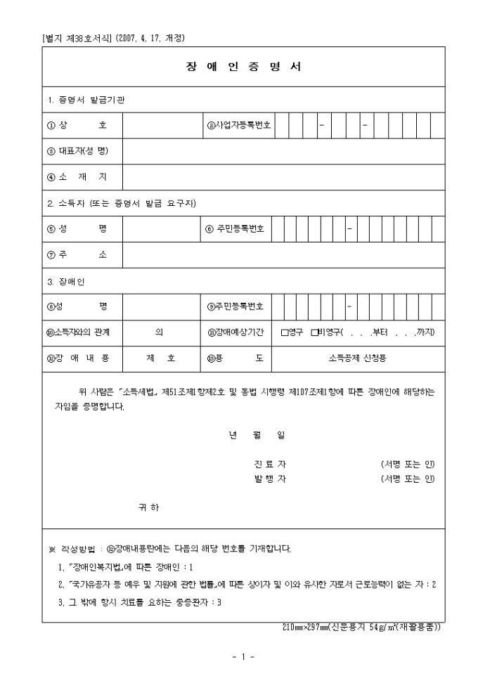 9,000원/월[2008년 연말정산]장애인 증명서 입니다.