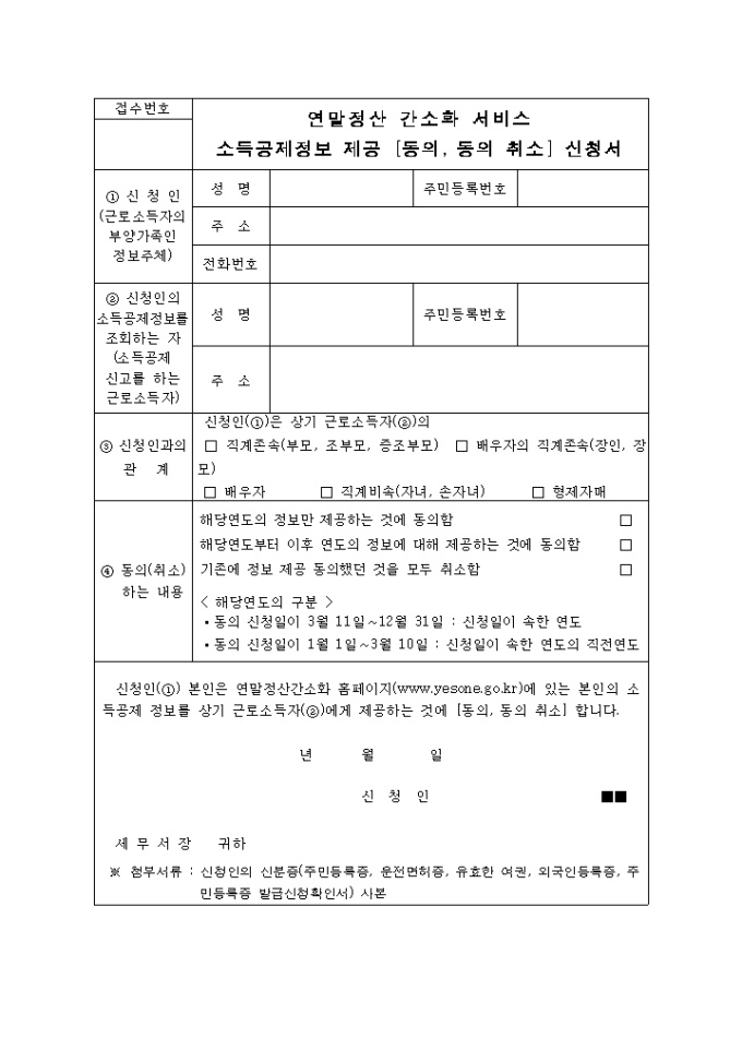 9,000원/월2008년 연말정산 간소화 서비스 소득공제정보 제공 [동의, 동의 취소] 신청서 입니다.