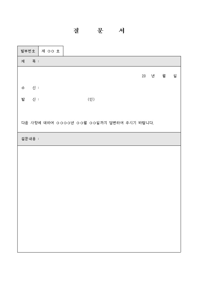 9,000원/월감사에 대한 질문 발생시 이용 할 수 있는 감사질문서 문서입니다.