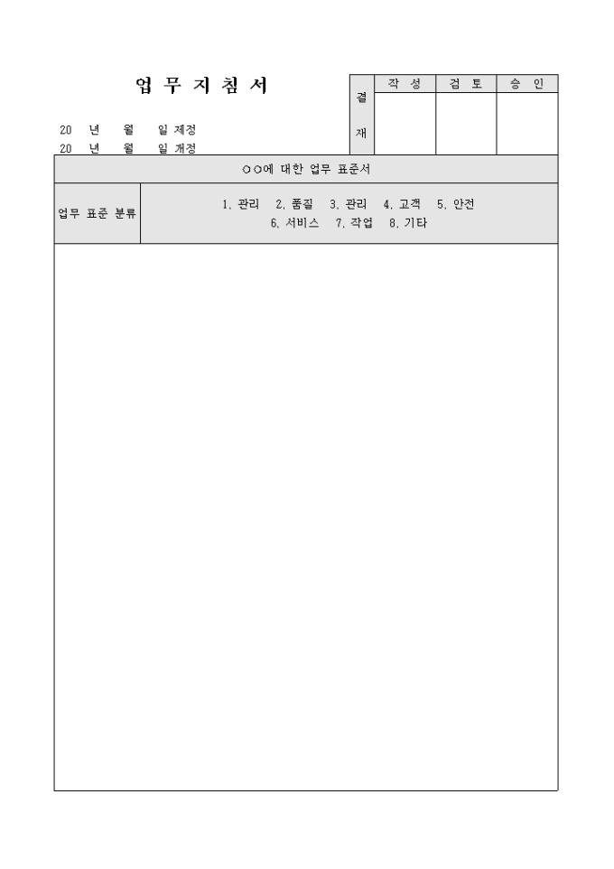 9,000원/월업무표준분류 등으로 구성된 업무지침서 양식입니다.
