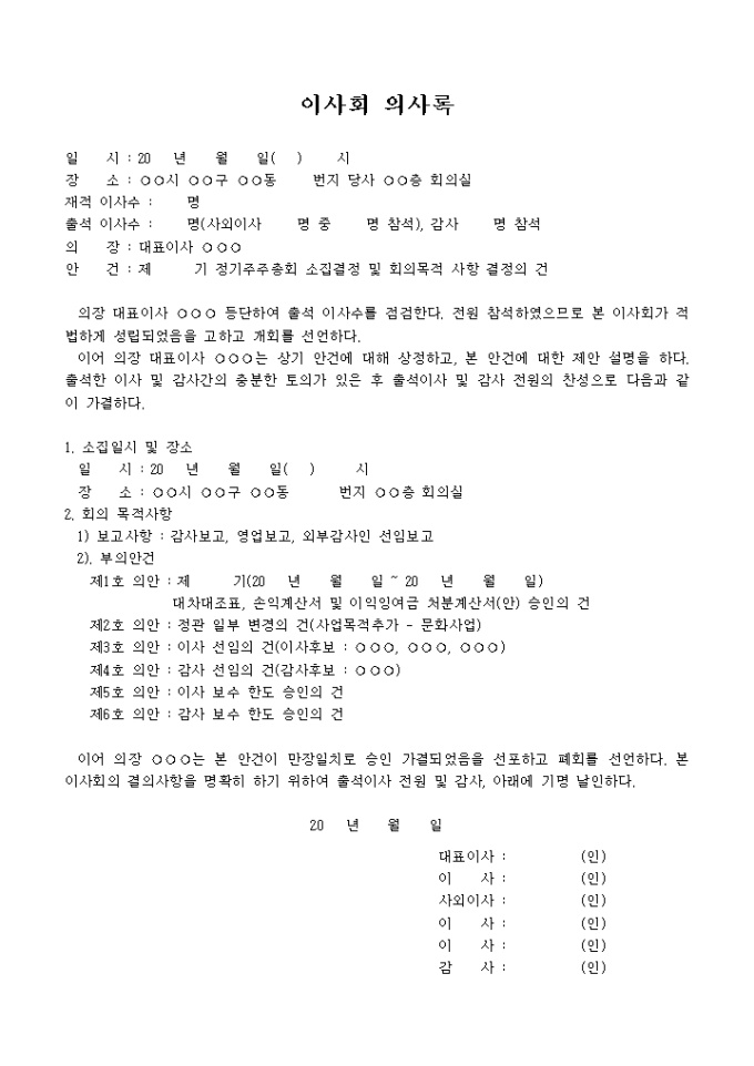 9,000원/월정기주주총회 소집결정 및 회의목적 사항 결정에 관한 이사회 의사록입니다.