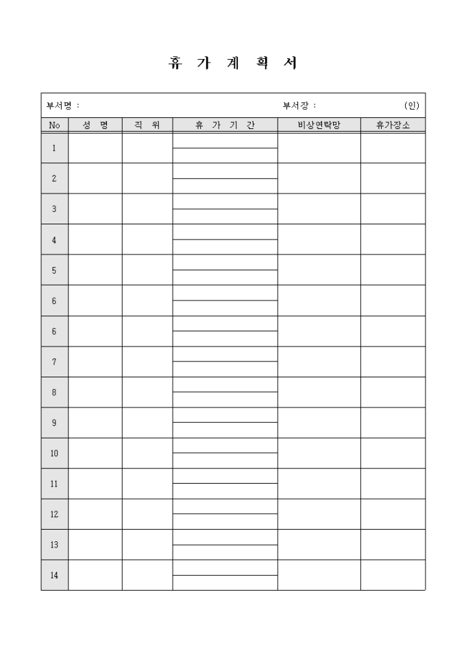 9,000원/월휴가기간, 비상시 연락처 등으로 구성되어 있습니다.