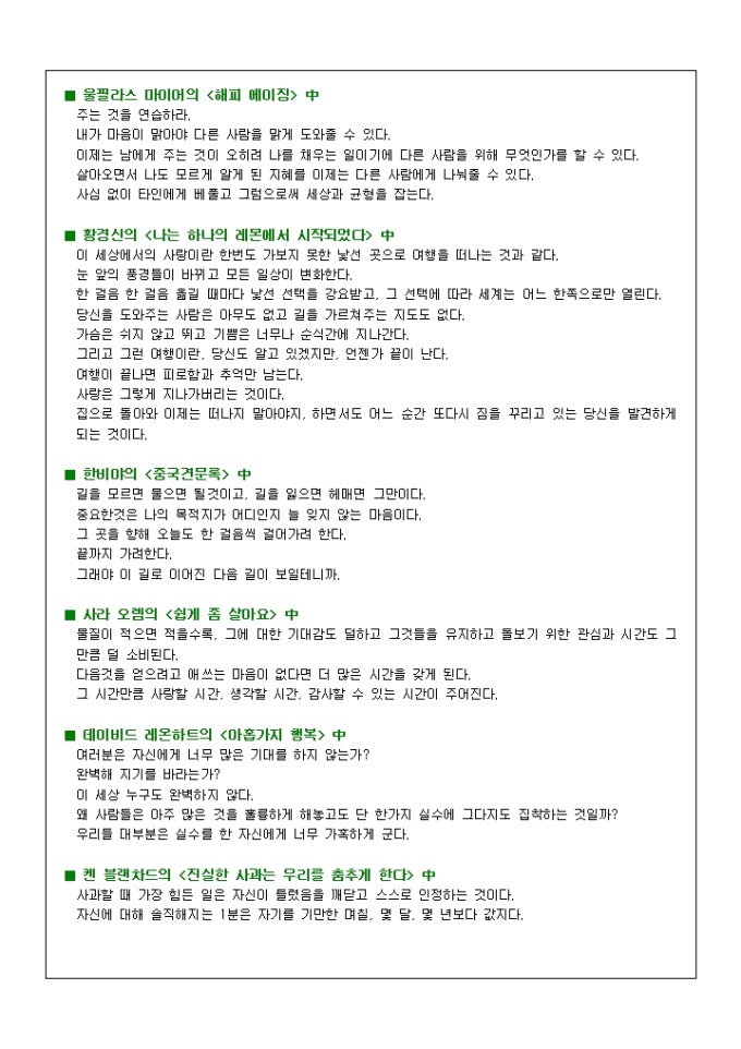 9,000원/월독서명언 20건이 포함되어있는 독서명언 모음집입니다. 다빈치코드, 행복, 뿌리깊은 나무 등의 책 속에 담겨져있는 명언들이 담겨져있습니다.