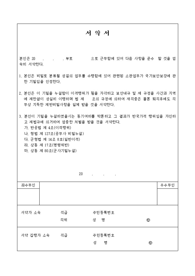 9,000원/월회사 입사 후 근무에 따른 비밀등 규정사항을 준수할 것을 서약하실때 사용하시는 양식 입니다. 본인은 20 . . . 부로 으로 근무함에 있어 다음 사항을 준수 할 것을 엄숙히 서약한다.