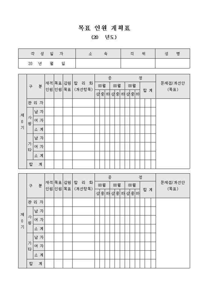 9,000원/월연간 목표 인원을 계획하고자 할때 사용하는 문서입니다. 목표인원과 감원목표인원등을 기록할수 있습니다.