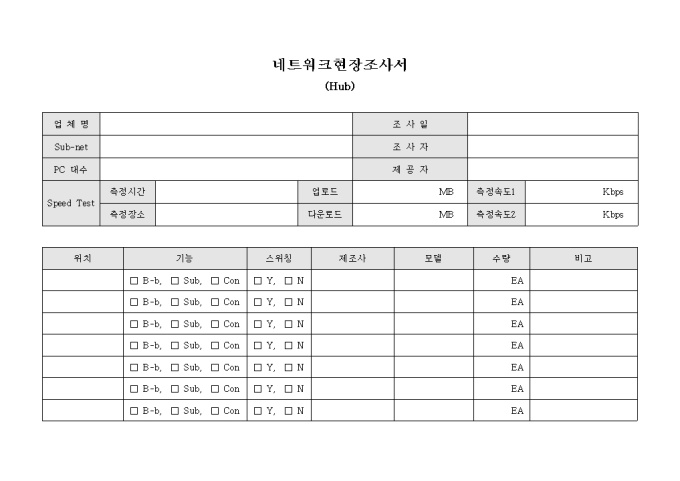 9,000원/월허브의 관리 상태와 기능에 따른 작동 여부를 현장에서 직접 조사 할 수 있게 구성된 현장 조사서 입니다.