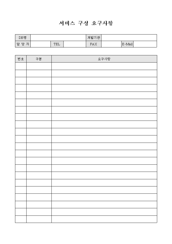 9,000원/월서비스의 구성 요구 사항입니다. 서비스의 구분과 요구사항을 기록 할 수 있습니다.