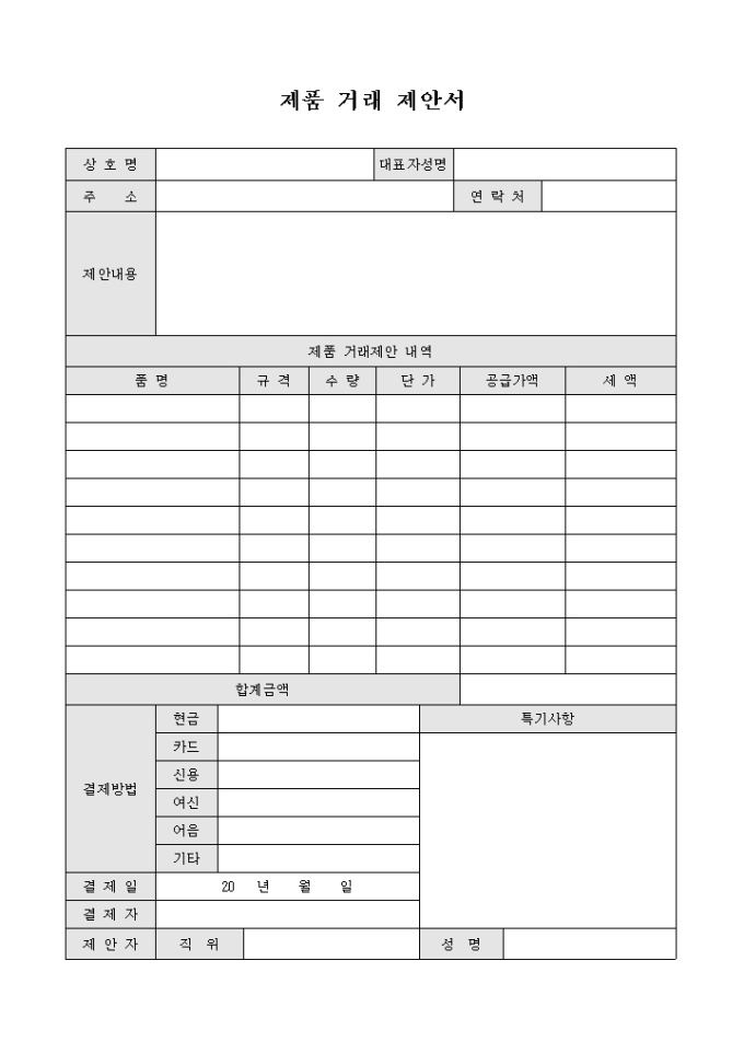 9,000원/월거래제품에 대한 제안관련 내용을 확인 할 수 있도록 구성된 제품 거래 제안서 입니다.