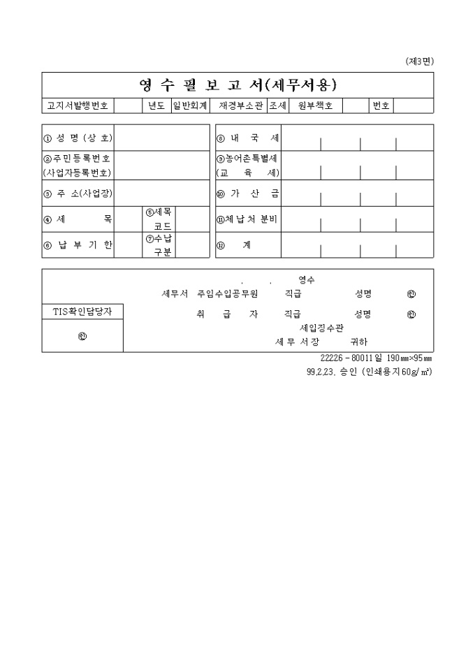 9,000원/월[별지 제11호의 2 서식] 영수증서,영수원부,영수필보고서 양식입니다.