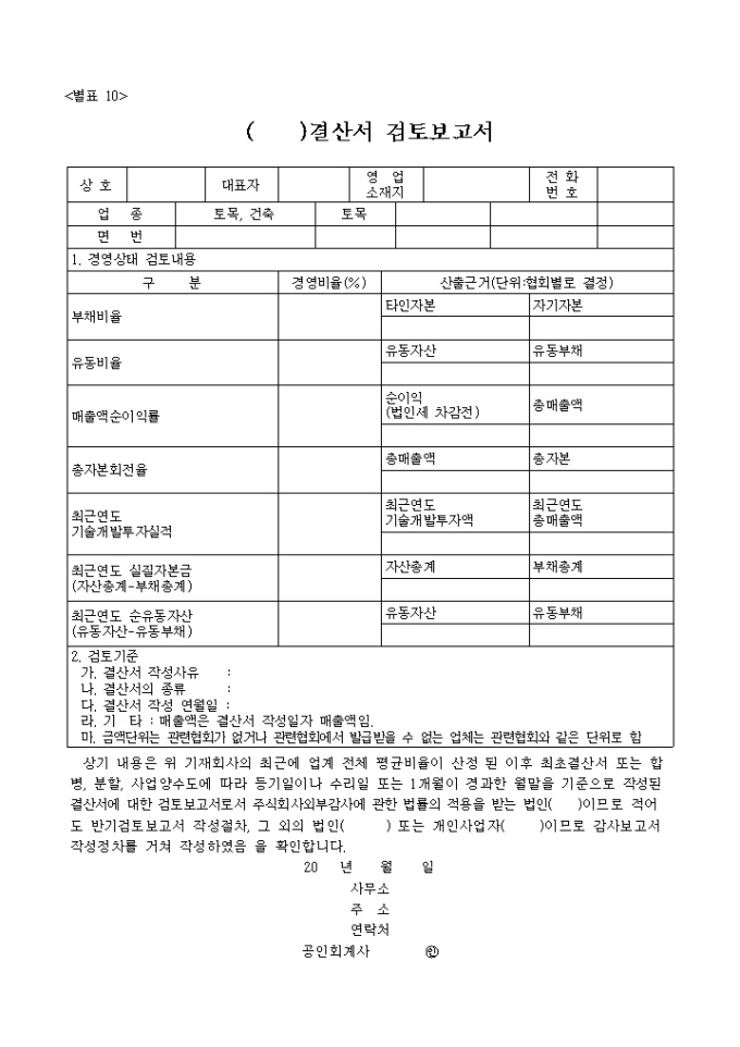 9,000원/월결산서검토보고서 입니다. 상기 내용은 위 기재회사의 최근에 업계 전체 평균비율이 산정 된 이후 최초결산서 또는 합병, 분할, 사업양수도에 따라 등기일이나 수리일 또는 1개월이 경과한 월말을 기준으로 작성된 결산서에 대한 검토보고서로서 주식회사외부감사에 관한 법률의 적용을 받는 법인( )이므로 적어도 반기검토보고서 작성절차, 그 외의 법인( ) 또는 개인사업자( )이므로 감사보고서 작성정차를 거쳐 작성하였음 을 확인합니다. ...