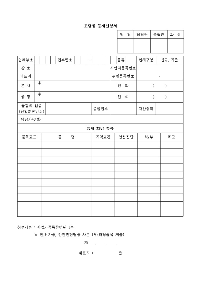 9,000원/월1. 상호 / 사업자 등록번호 2. 대표자 / 주민등록번호 3. 본사 / 전화 4. 공장 / 전화 5. 공장의 업종 / 종업원수 / 자산총액 6. 담당자 및 전화 7. 등재희망 품목