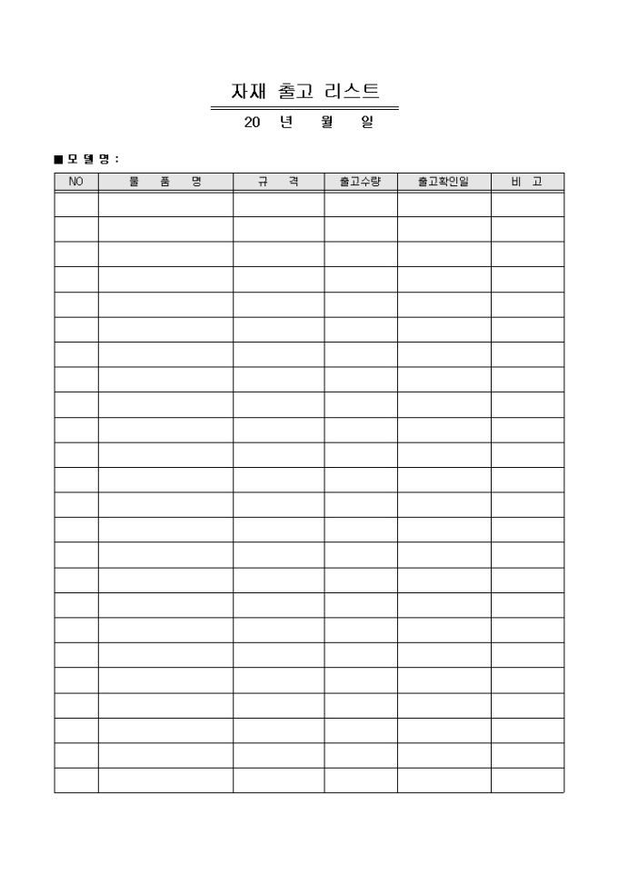 9,000원/월자재를 출고한 내역에 대해서 편리하게 관리 할 수 있도록 제작된 서식으로 물품명과 규격, 출고수량등을 기록합니다.