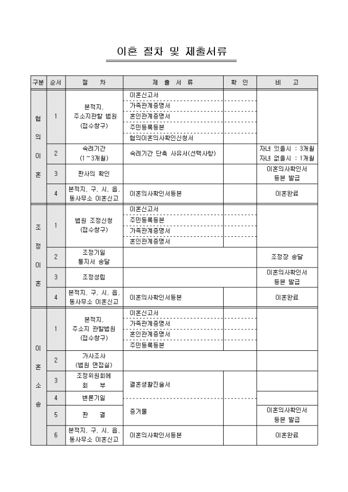 9,000원/월협의이혼, 조정이혼, 이혼소송의 절차와 제출서류 리스트입니다.