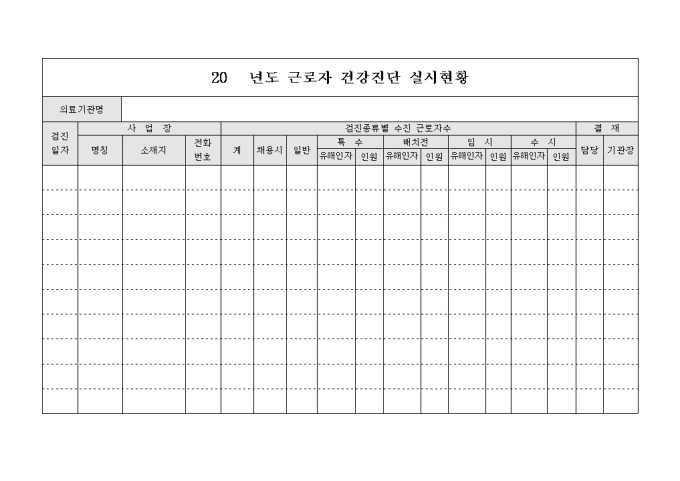 9,000원/월사업장에 근무하는 근로자의 건강진단 실시 현황을 기록 한 현황표 입니다.
