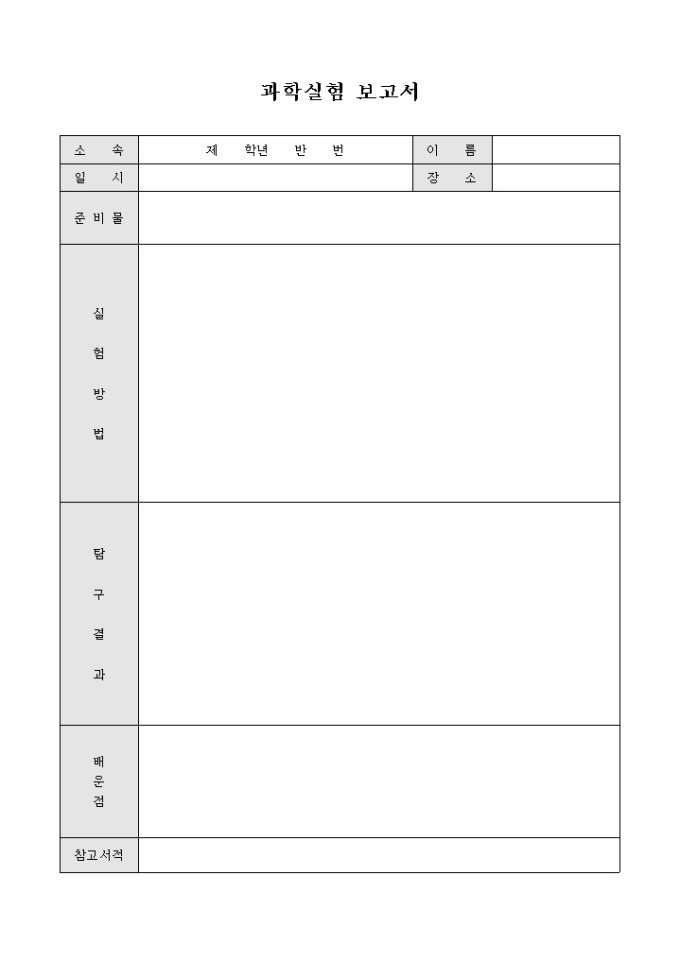 9,000원/월과학 실험 내용을 기록할 수 있도록 제작된 서식으로 실험일시 및 장소와 준비물 등을 기재하고 실험방법 및 탐구결과, 배운점, 참고서적 등을 기록합니다.