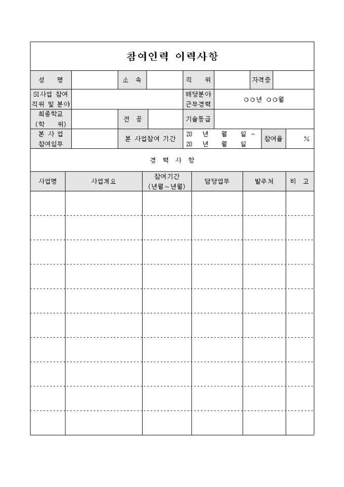 9,000원/월SI사업의 참여인력에 따른 이력사항등을 기록 할 수 있습니다.