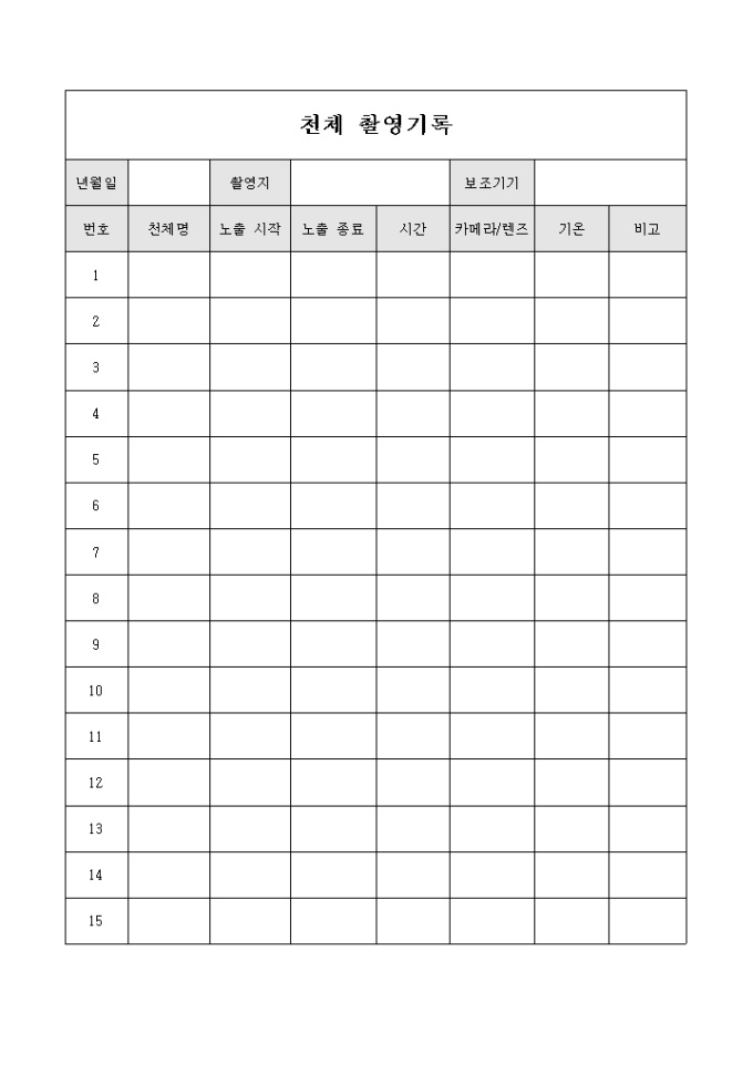 9,000원/월천체촬영에 대한 기록을 시간별로 작성 할 수 있도록 구성되어 있습니다.