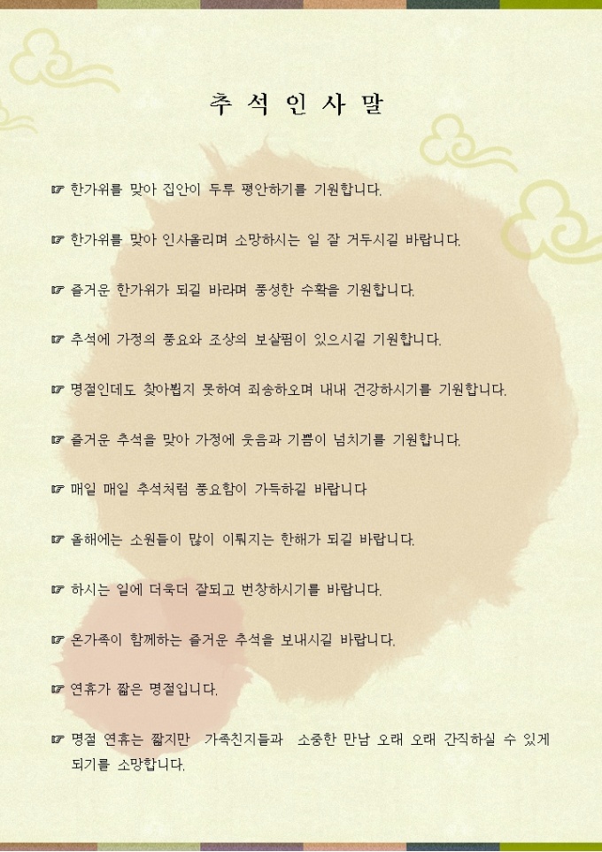9,000원/월추석을 맞이하여 주위분들께 드리는 인사말예시입니다.