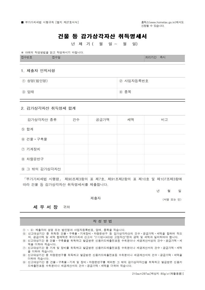 9,000원/월제27호건물등감가상각자산취득명세서 2017.03.10 ※출처 : 기획재정부