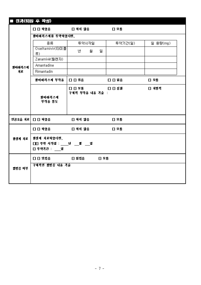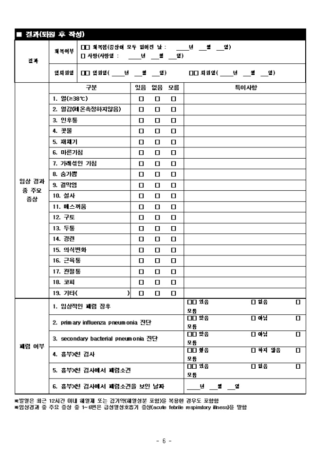 9,000원/월신종인플루엔자A(H1N1)추정-확진환자사례조사서 양식입니다.