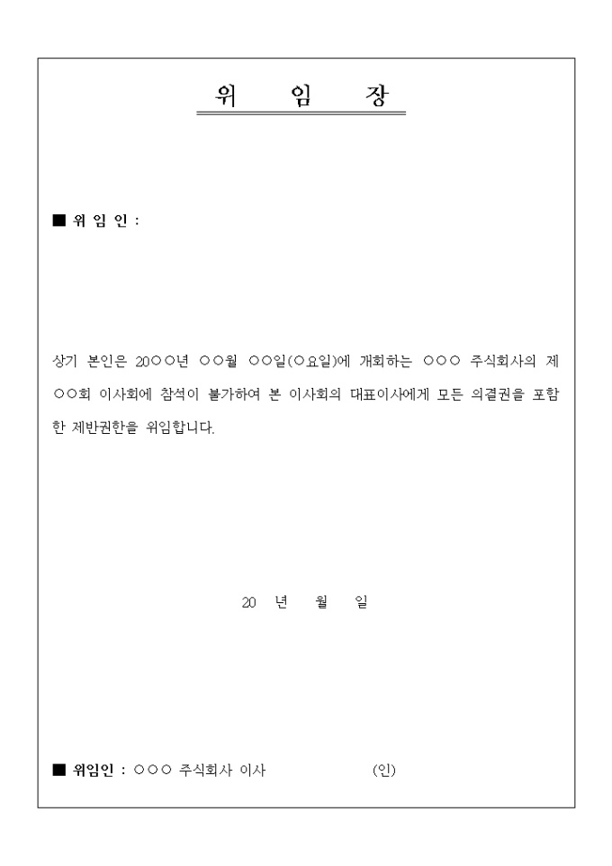 9,000원/월일반적으로 사용할 수 있는 이사회 위임장입니다.