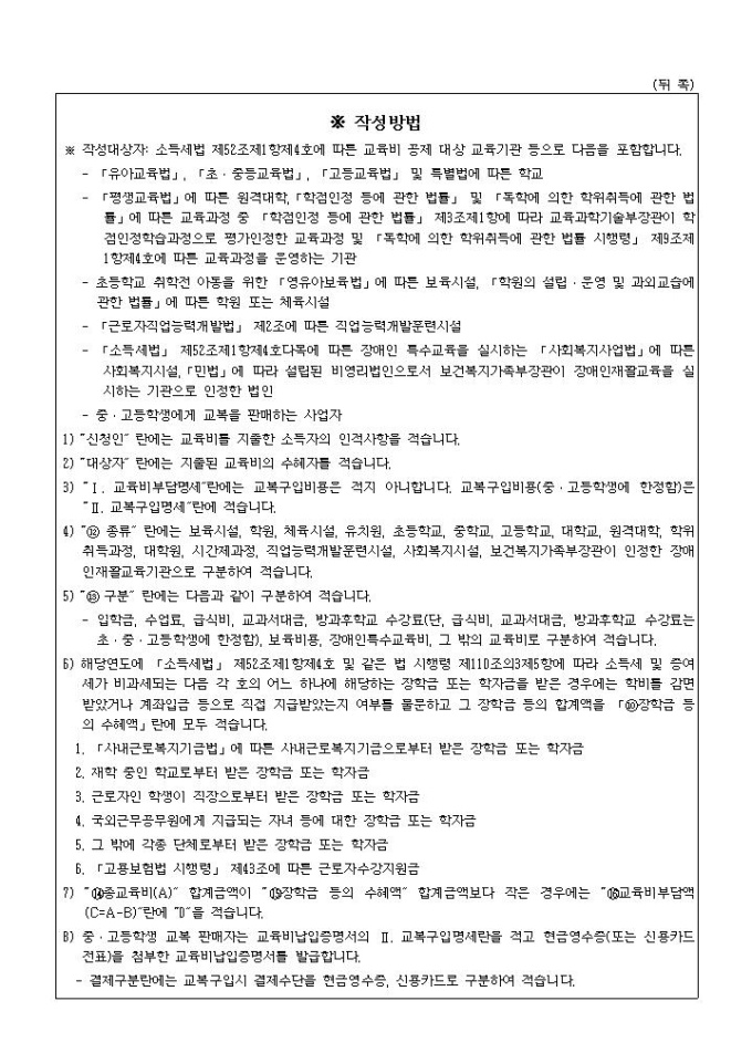 9,000원/월근로자가 교육기관에 지출한 교육비, 중고생을 위해 지출한 교복구입비용을 기재한 소득공제용 영수증입니다.