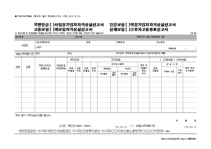 9,000원/월2010년 12월 15일 개정된 직장가입자자격상실신고서입니다.