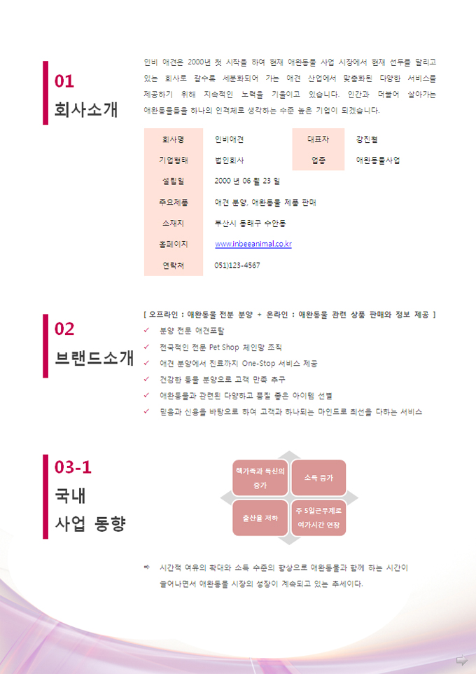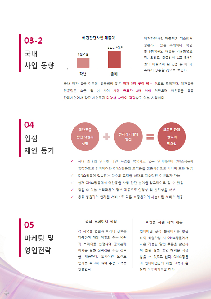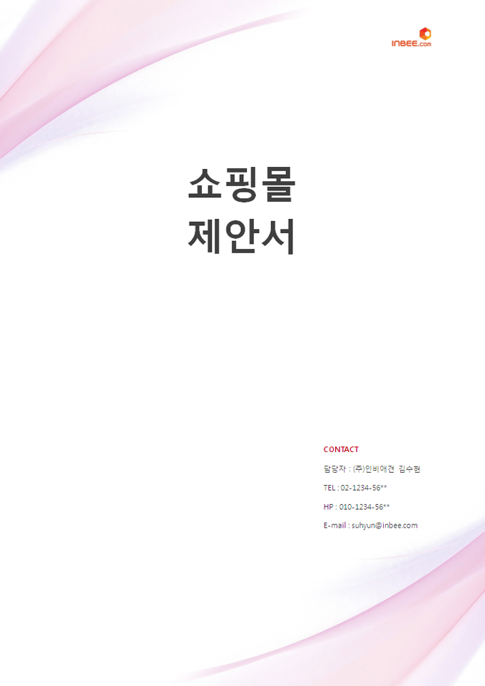 쇼핑몰 제안서입니다. 표지 포함 3페이지의 요약본이며, 총 다섯 목록으로 구성되어있습니다.