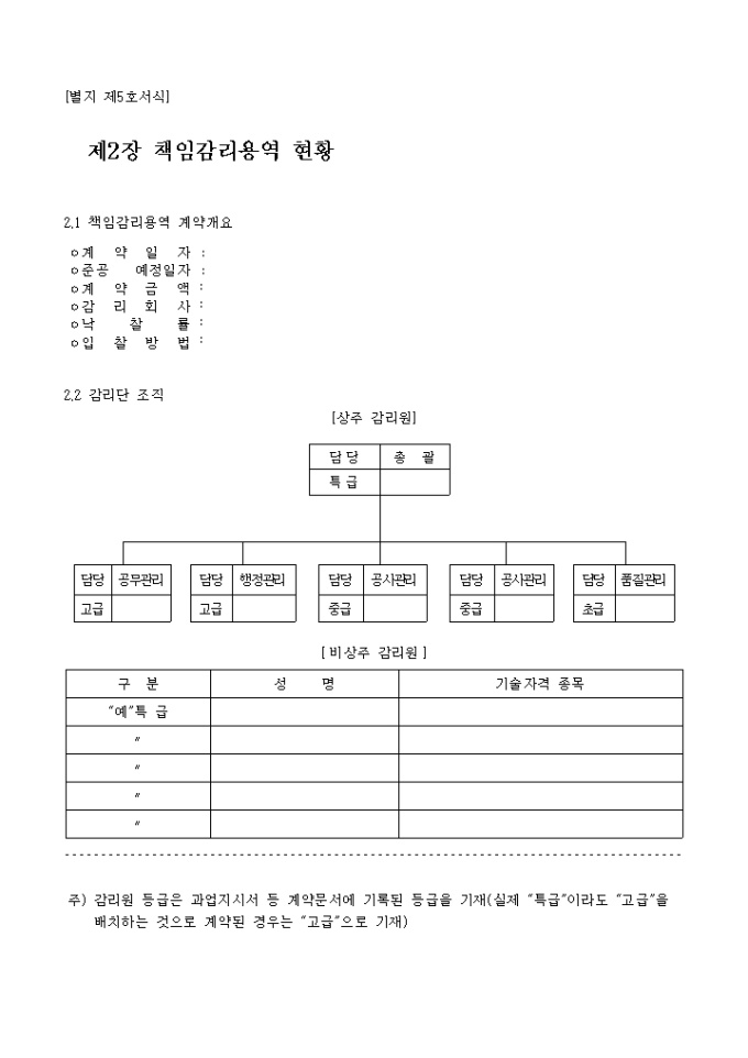 9,000원/월[별지 제5호서식] 책임감리용역현황 입니다. 계 약 일 자 준공 예정일자 계 약 금 액 감 리 회 사 낙 찰 률 입 찰 방 법 ...