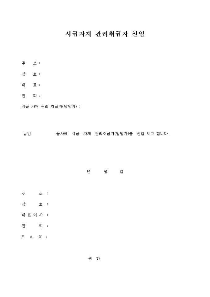 9,000원/월사급자재 관리 취급자를 선임할때 사용하는 양식입니다.