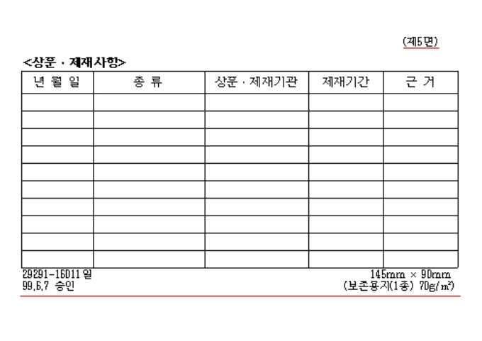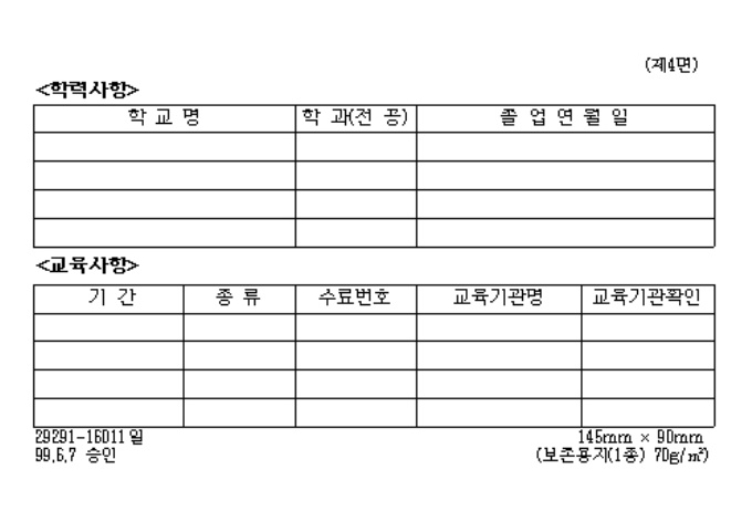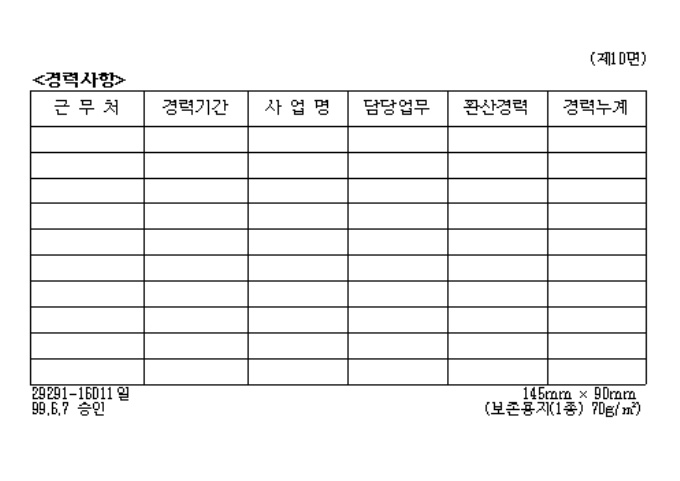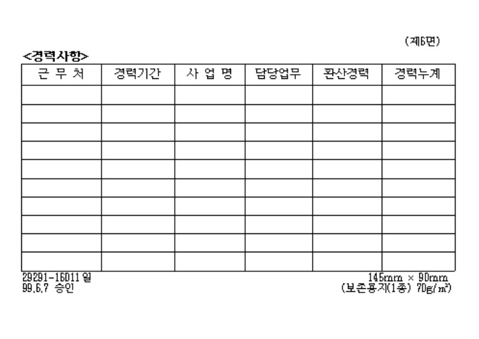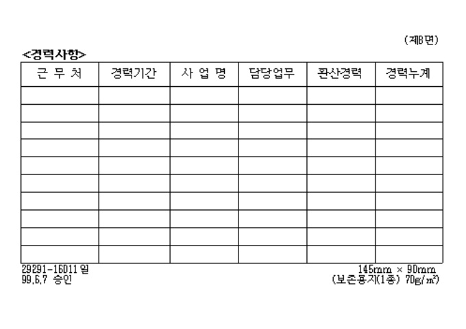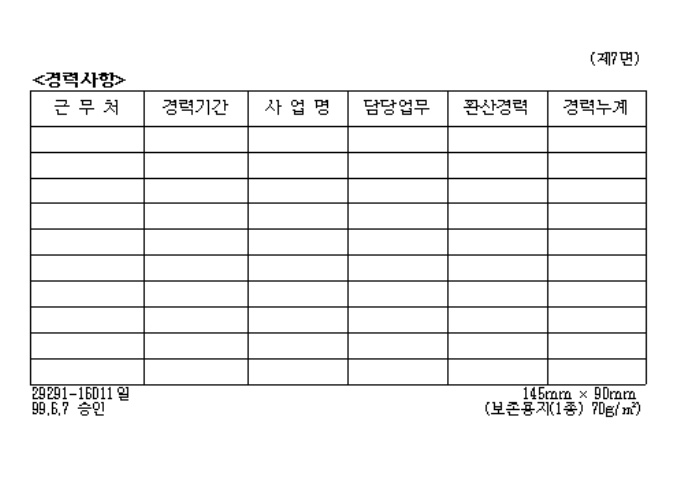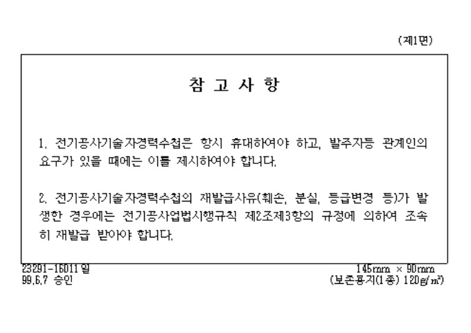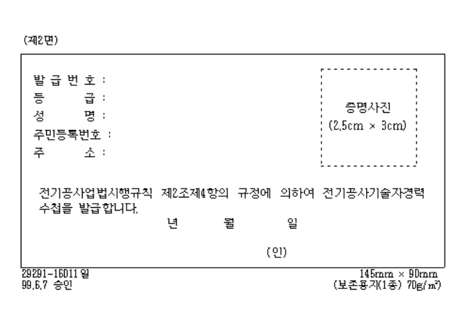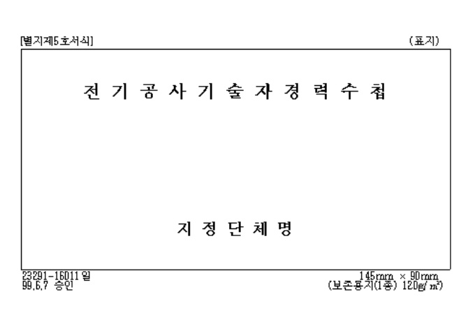 9,000원/월[별지제5호서식] 전기공사업법시행규칙 제2조제4항의 규정에 의하여 전기공사기술자경력수첩 발급시 사용하는 양식입니다.