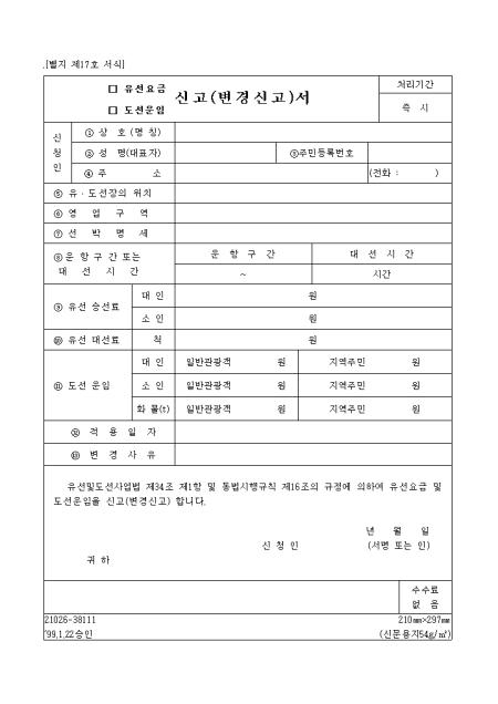 기름오염비상계획서검인, 변경검인신청서(선박용)
