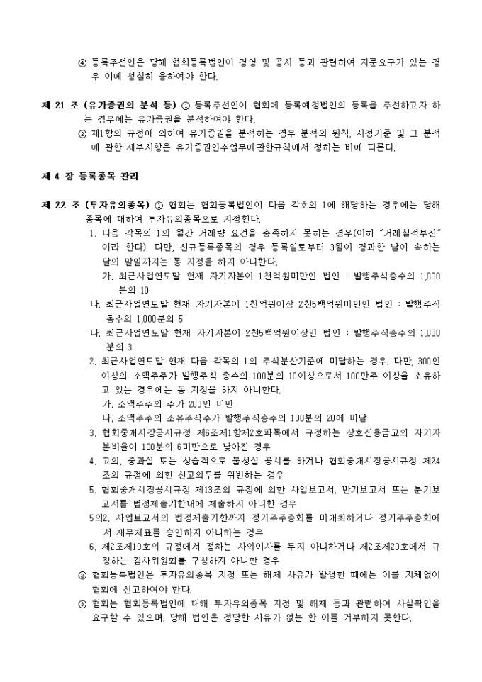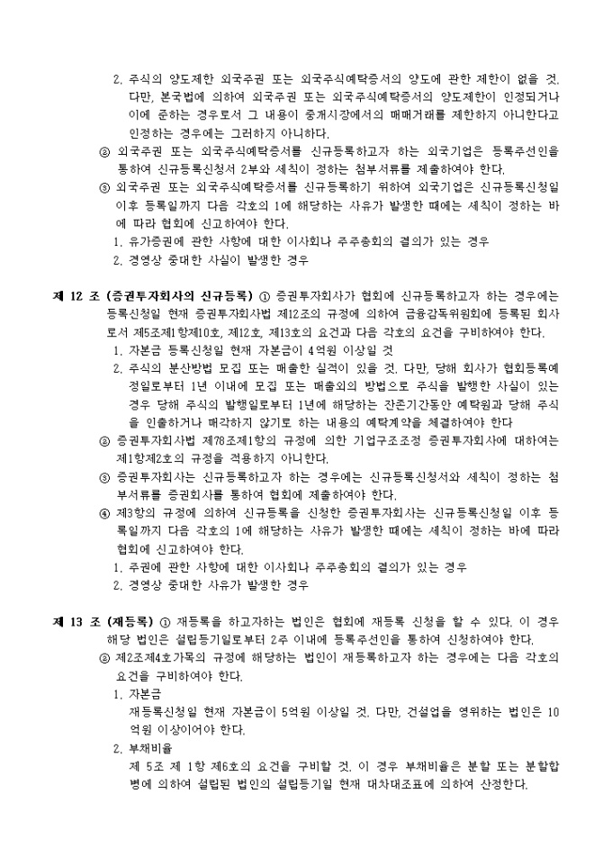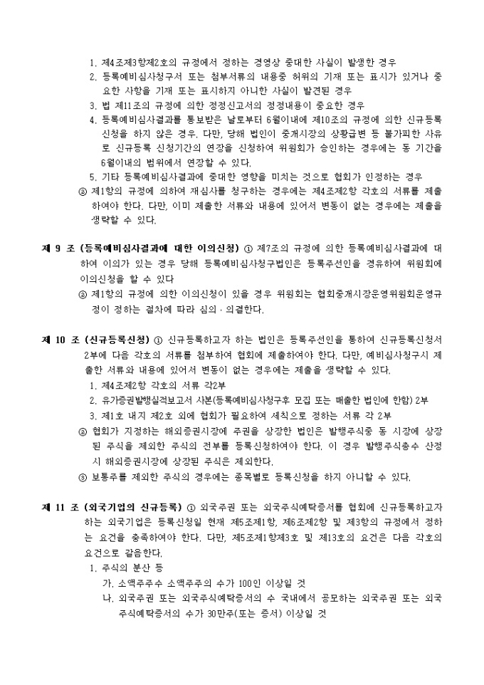 유가증권협회 등록 규정