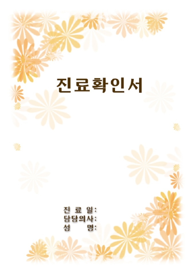 [서식표지] 진료확인서(오렌지색꽃무늬)