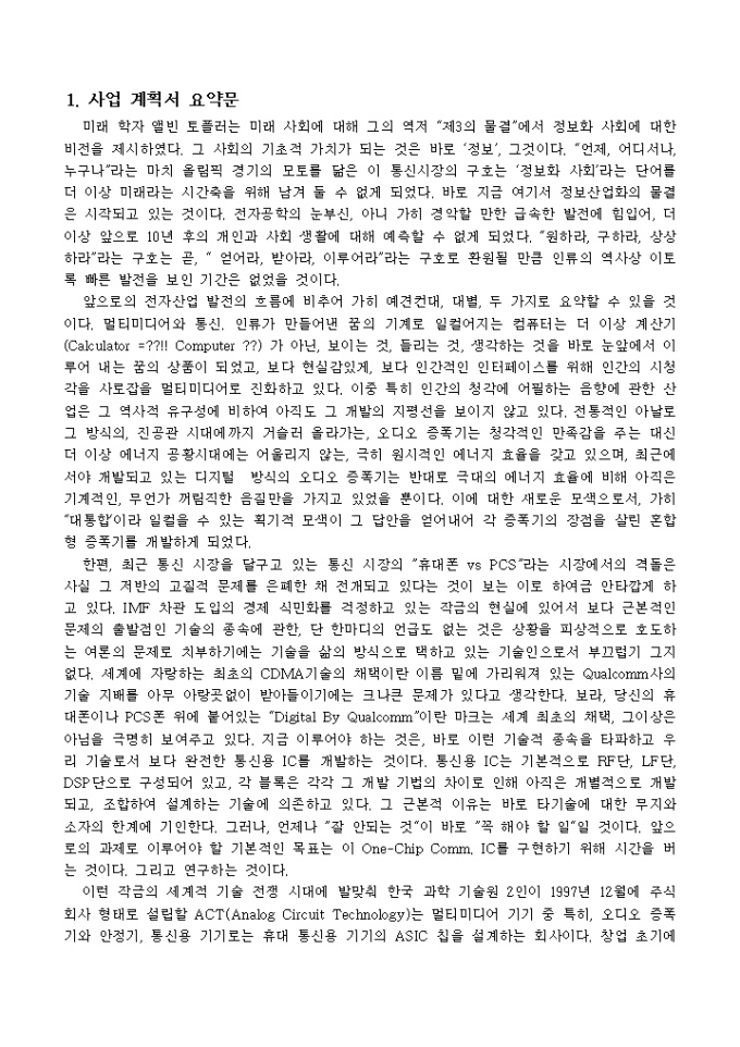 통신 모듈 설계 사업계획서 예제