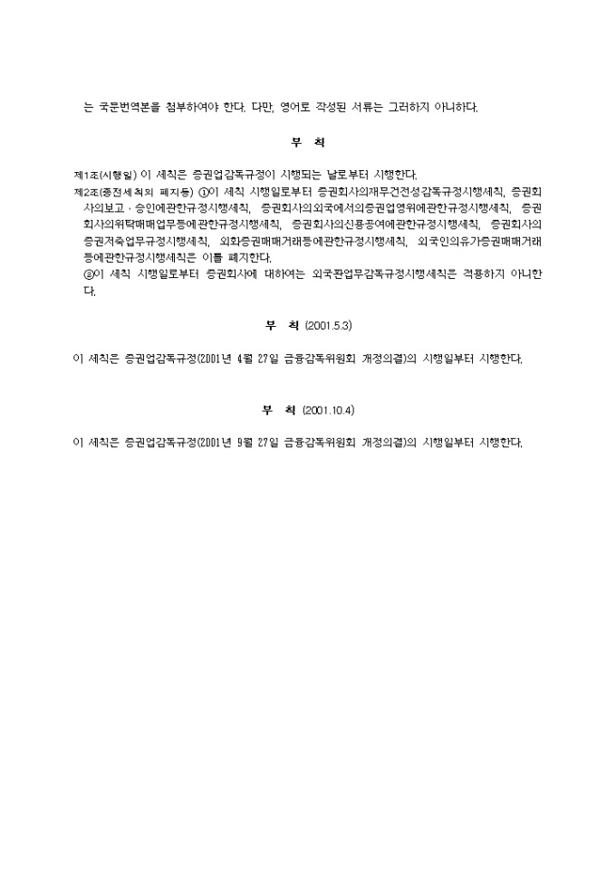 증권업감독 규정 시행세칙(2001.10.04)