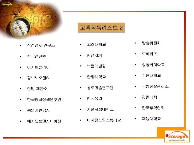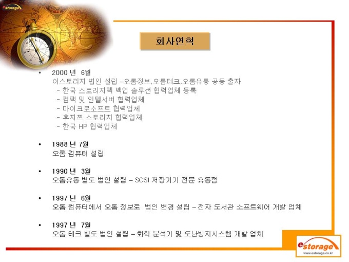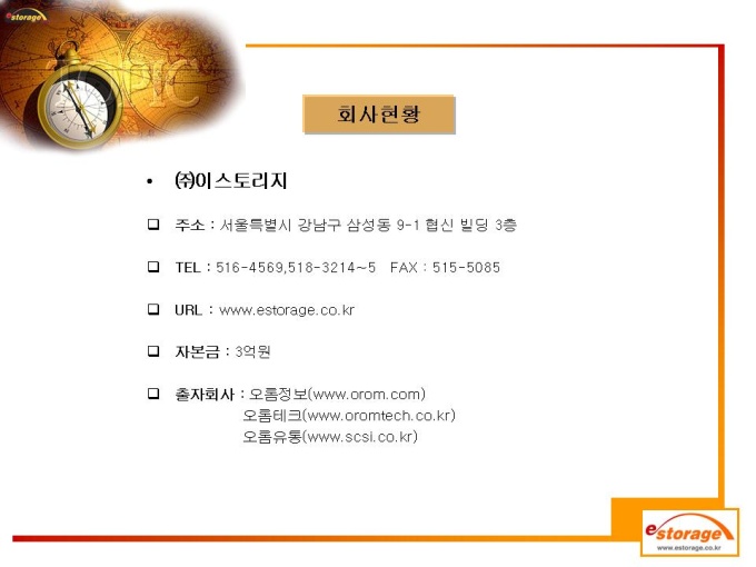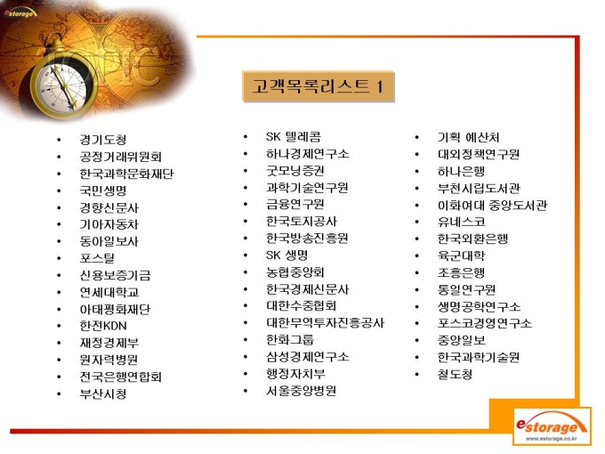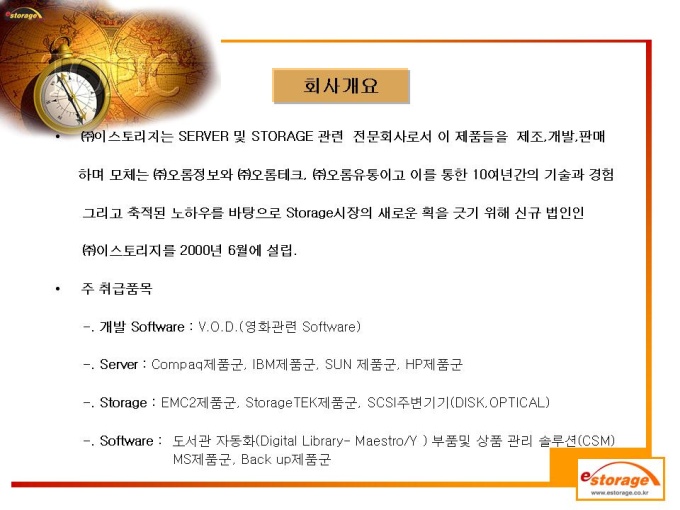 회사소개서 (통신_장비) 1.회사개요 2.회사연혁 3.회사현황 4.조직구성도 5.고객목록리스트 1 6.고객목록리스트 2 7.제품소개 8.VOD Solution 9.Soft ware 10.서버군 11.백업장비