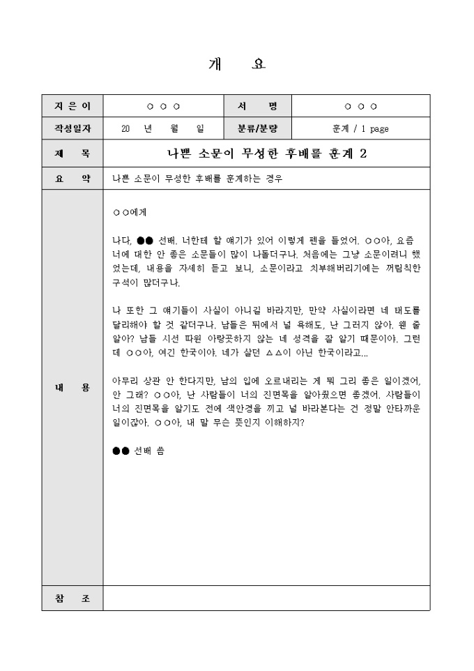 훈계문(나쁜소문이 돌고있는 후배에게)