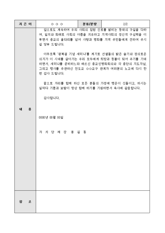 기념사(광복절 기념 세미나에서 종교지도자들에게)