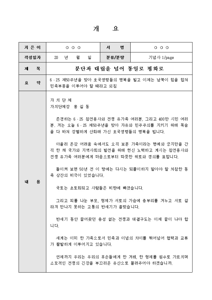 기념사(6.25 제50주년을맞아호국영령들의명복을비는)